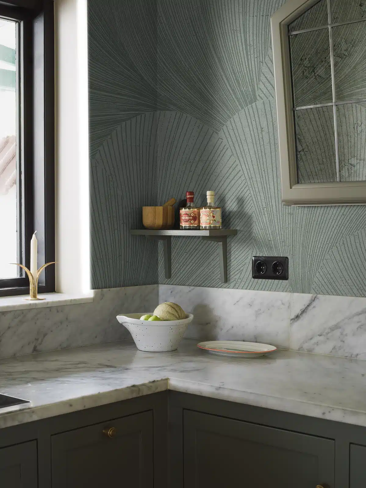 Novalin tapet lages av ekte lin og gir veggene et organisk og varmt uttrykk med håndverksmessig presisjon.